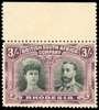 1910-13 3s green and violet, perf 14, upper marginal from pos. 2 showing ‘long gash’ in Queen's ear, o.g. SG 158