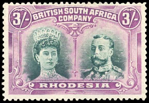 Rhodesia 1910-13 3s bright green and magenta perf 14