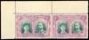 1910-13 3s bright green and dull claret, perf 14, upper left corner horizontal pair showing ‘short gash’ in Queen's ear (pos. 2), fresh large part o.g., a wonderful proving positional piece which is almost certainly unique. BPA cert (2007). RSC C