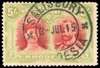 1910-13 5s scarlet and pale yellow-green, perf 14, ‘short gash’ head plate, pos. 23, used with large part ‘SALISBURY / S. RHODESIA’ cds (Proud type D8), dated ‘3 JUL 15’, a fine and scarce commercial usage. SG 160