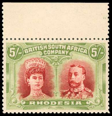 Rhodesia 1910-13 5s crimson and yellow-green perf 14 unmounted