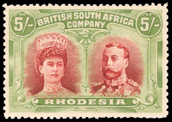 Rhodesia 1910-13 5s crimson and yellow-green perf 14