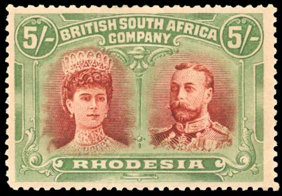 Rhodesia 1910-13 5s deeper brown-red and green perf 14