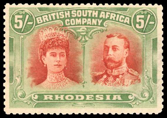 Rhodesia 1910-13 5s deeper Indian red and green perf 14