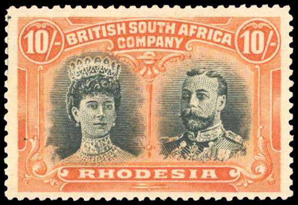 Rhodesia 1910-13 10s greenish black and reddish orange