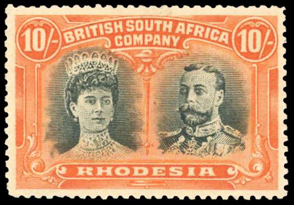Rhodesia 1910-13 10s greenish black and reddish orange