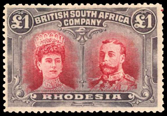 Rhodesia 1910-13 £1 carmine-red and bluish black perf 14