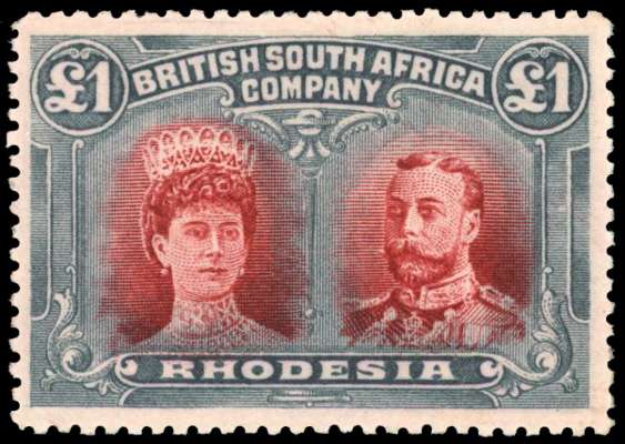 Rhodesia 1910-13 £1 rose-scarlet and bluish black perf 14