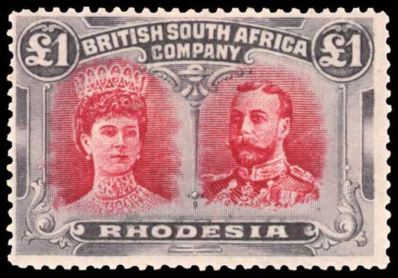 Rhodesia 1910-13 £1 deep carmine and blue-black perf 14