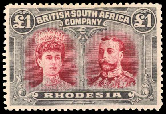 Rhodesia 1910-13 £1 deep carmine and (paler) blue-black perf 14