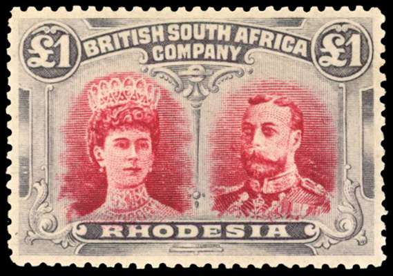 Rhodesia 1910-13 £1 (brownish) lake and (greenish) grey-black perf 14