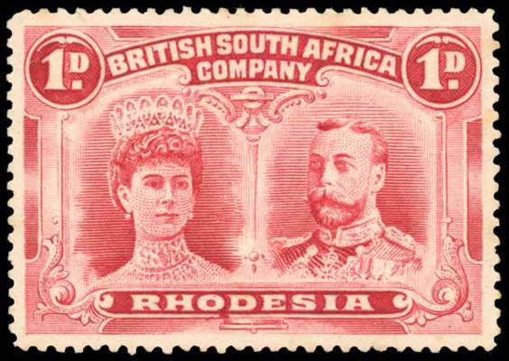Rhodesia 1910-13 1d carmine perf 15 OD flaw