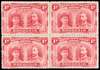 1910-13 1d carmine, perf 15, block of 4, fresh part to large part o.g., slight bend and the upper left with small adhesion on face, still attractive and very scarce. SG 170
