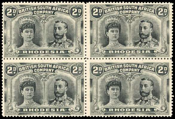 Rhodesia 1910-13 2d black and slate-black perf 15 block of 4