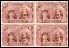 1910-13 6d purple-brown and brown-purple, perf 15, ‘thick ear’ headplate, block of 4 (pos. 1-2/6-7) showing the ‘Tiara’ flaw on lower left stamp, fresh large part o.g. with trace of off-setting on reverse, an extremely rare block of this printing. RSC H