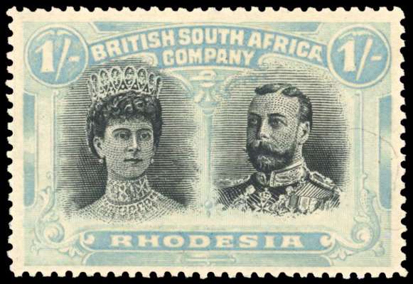 Rhodesia 1910-13 1s black and pale turquoise-blue perf 15