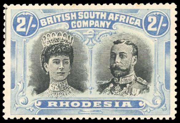 Rhodesia 1910-13 2s black and dull (greenish) blue perf 15