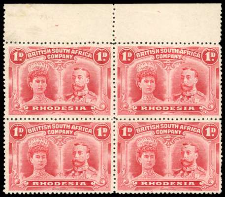 Rhodesia 1910-13 1d bright carmine perf 13½ block of 4