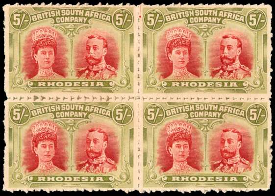 Rhodesia 1910-13 Clandestine roulette 5s deep rose-red and yellow-green