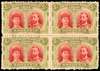 1910-13 ‘Clandestine’ roulettes, 5s deep rose-red and yellow-green, block of 4 with gum, a fine multiple.