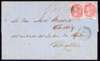 1859 (12 MAY) entire from Singapore to Spain, “Matia” correspondence, franked by India 1856-66 8a carmine (2), cancelled by individual strikes of “B-172” octagon, with red crayon “1/10” rating and blue Gibraltar “JY 4” transit cds alongside, and on reverse a very fine strike of “SINGAPORE / P.O.” despatch cds in bright red; neat and attractive, and far above average.