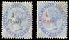 Straits Settlements SG 72/73 1884 4c on 5c blue with surcharges in black and red