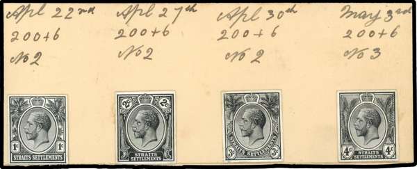 Straits Settlements 1921-33 1c to 4c cut-down die proofs