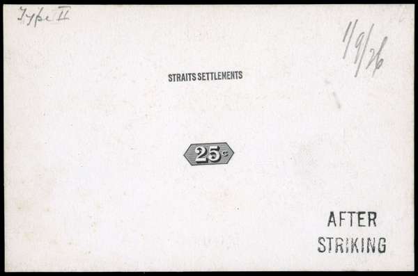 Straits Settlements 1926 25c Type II duty plate AFTER STRIKING