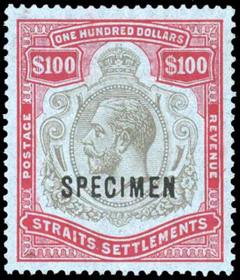 Straits Settlements 1921-33 $100 Script wmk opt Specimen