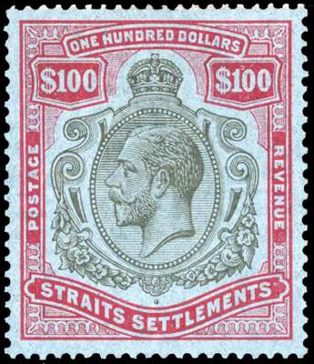 1921-33 $100 black and carmine/blue, Script wmk, fresh o.g. Minor gum crease but near perfect centring. Diena cert (1984). SG 240c, cat £11,000.