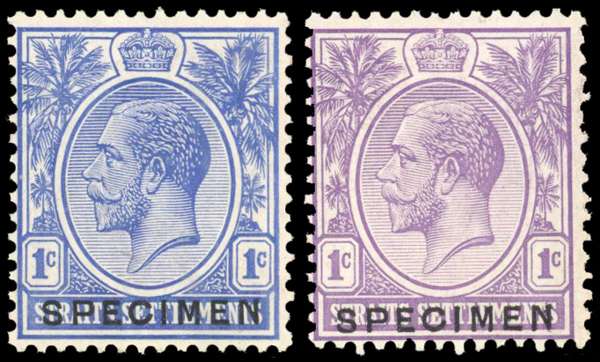 Straits Settlements 1922 (c.) 1c printer's samples in blue and violet