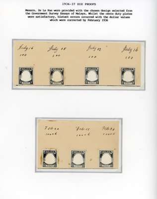 Straits Settlements 1936-37 KGV die proofs from day book x22