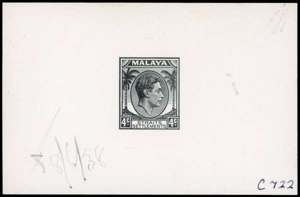Straits Settlements 1938 KGVI 4c die proof in black