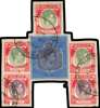 Postal Fiscal. 1938 KGVI $25 purple and blue/blue, inscribed ‘REVENUE / REVENUE’, tied to linen envelope piece in conjunction with 1937-41 25c (2) and $2 (3) by ‘SINGAPORE / 1 / REGISTRATION’ cds (Proud type R17), dated ‘29 MR 1940’, very fine.