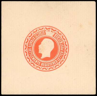 Straits Settlements 1922 KGV 12c embossed registered letter stamp