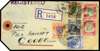 1938 (8 NO) registered airmail parcel tag endorsed ‘NO 2 / PER AIRCRAFT / COOEE’ and bearing 1937-41 1c, 12c, 30c, $2 (2) and $5, tied by ‘SINGAPORE / 5 / REGISTRATION’ cds (Proud type R21) with ‘Singapore 30’ registration label at left, fine and scarce, the reverse with a break-down of the postage charge.