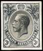 1912-23 3c stamp-size composite essay in the issued design, comprising KGV head vignette on wove paper overlaid with frame die proof on glazed card with central portion removed, fine and most unusual