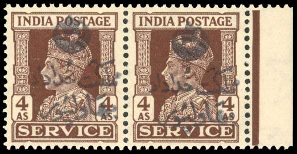 Bahawalpur 1947 4a Service rubber handstamp in black pair mint