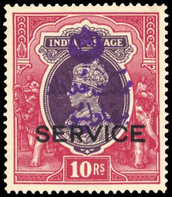 Officials. 1947 10r Service local rubber handstamp in purple, large part o.g. RPS Certificate (2016). I&A S159