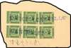 Revenues. 1945 (c.) Revenue overprint on 1a green Receipt stamp, Indap printing; unmounted o.g. from initial printing (clear impression) with four used from later printings showing wear. Also a used block of four and pair on piece from the De La Rue printing