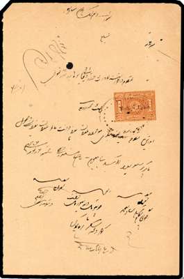 Revenues. Court Fee 1a brown-orange overprinted ‘Receipt Ticket’ on document, fine and rare