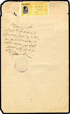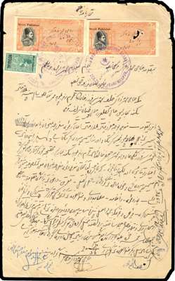 Revenues; Notarial. De La Rue 2r8a NOTARIAL overprinted ‘West Pakistan’ mint, fine appearance but thinned, the discovery example. Also a used (punched) example on document with two 8a Court Fees