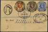 1902 Dented Frame varieties of both 6p KEVII brown and 1/- KEVII orange on registered cover to Germany, with additional 2½ d KEVII bright blue, all tied by full strikes of Grand Cayman cds (1 SE 1902), Jamaica and London oval registration handstamp on face and Bucholtz on reverse. Ex Maisel, a rare and important cover being the only known Cayman Islands cover with two dented frame varieties