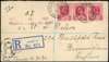 1907 Registered cover franked with three 1d...