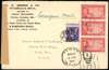 1944 Consignee Mail, commercial cover to Tampa, Florida. Three 1d KGVI issues tied by Georgetown duplex (15 NO 1944), examined by US customs on arrival (tape on left, tied by handstamp on reverse), additional postage added (3c US stamp cancelled with Tampa oval cancel)