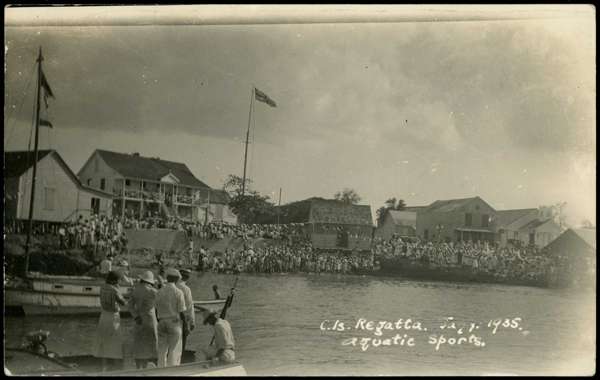1920s-30s Assortment of better cards with interesting scenes from various publishers: "Court House after the 1915 Hurricane", " Mc.Taggart's Square" used 1917 with better franking Type 15 War Tax surcharge and a pair of ¼d and a single 1d KGV values cancelled at Georgetown, addressed to England. "Regatta 1935" used with 3d KGV issue (1912 type) cancelled Georgetown (28 JA 1935) to England. "The Governor's landing - Being met by the Commissioner" used locally with ½d KGV issue (17 AP 1931) etc., mixed condition, (9 items)