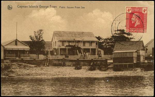 1930 (circa) Collection of sepia "Panton" postcards, both mint and used: "His Excellency Sir R.E. Stubbs, G.C.M.G. Governor of Jamaica, landing at the Government Pier", "Elmslie Memorial Church", "Government House" used 1929 to USA (small area of damage probably caused by removal from album). "Central Views of George Town" with ¼d and ½d KGV issues cancelled on picture side (1929). "Peace Memorial, Town Hall" with 4½d KGV issue cancelled on the picture side (1929). "Turtle Rearing" with 1d Coronation cancelled Little Cayman. "Public Square from Sea" with 4d KGV issue on picture-side (1934), unaddressed. A few flaws here and there, two slightly reduced. A scarce assembly (13 items, 1 duplicated)