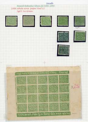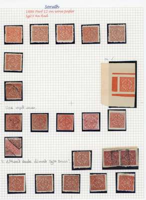 1886 1a green, 4a red and 4a brown perf 12, mint and used collection on pages, either laid or wove paper types, with shades. Includes complete sheets of 20, in varying shades from green to deep green (7), 1a green imperf singles, 4a red with complete sheets of five (3) and double sheet of 10, 4a red as imperf single from far left of sheet with margins (SG 23a,var), 4a brown, generally fair to fine condition. SG 19-24