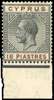 1921-23 18pi black and brown, Script wmk, lower marginal single showing variety 'Broken bottom left triangle' (R10/6), mint o.g., faintly yellowish gum and light bend do not affect fine appearance. A rarity, with just 68 possible and a low survival rate. SG 98a £1200.