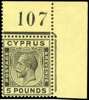 Cyprus 1924-28 £5 black on Yellow with Sheet number 107 S.G. 117a cat £3,750
